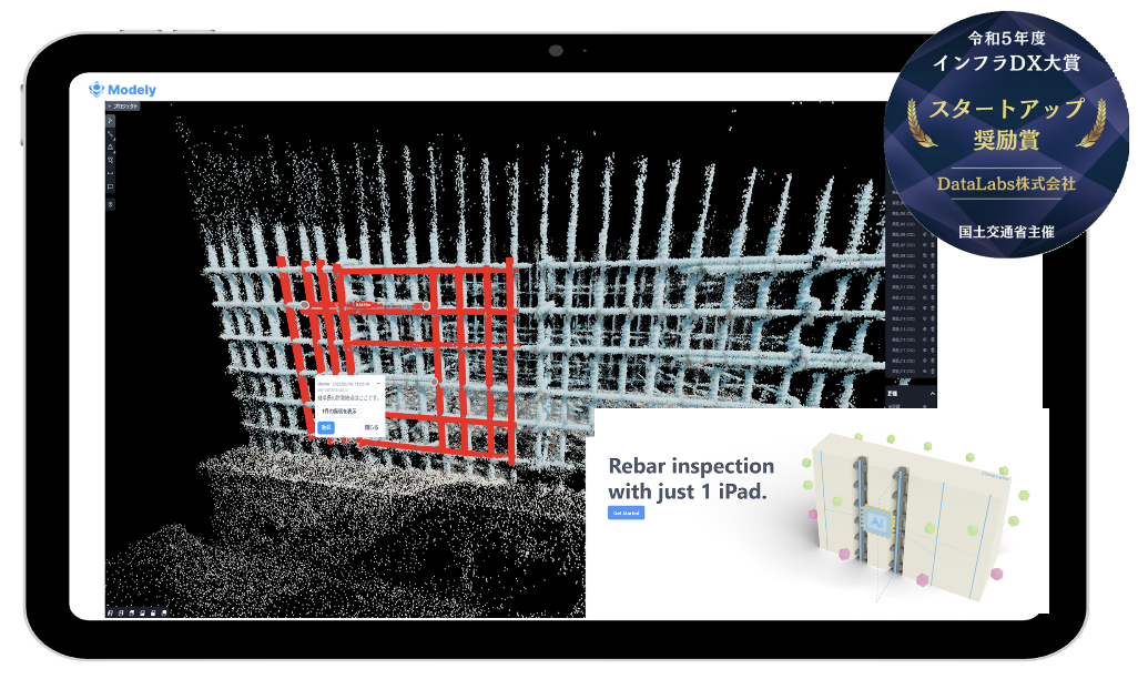 DataLabs Inc. เป็นบริษัทสตาร์ทอัพที่ให้บริการระบบคลาวด์เพื่อเพิ่มประสิทธิภาพการดำเนินงานในอุตสาหกรรมก่อสร้างทั้งหมด โดยมีพันธกิจในการปฏิวัติวงการก่อสร้างด้วยข้อมูล 3 มิติ บริษัทได้พัฒนาและให้บริการระบบตรวจสอบเหล็กเสริม 3 มิติ ซึ่งรวมถึง ‘Modely’ และ ‘Hatsuly’
