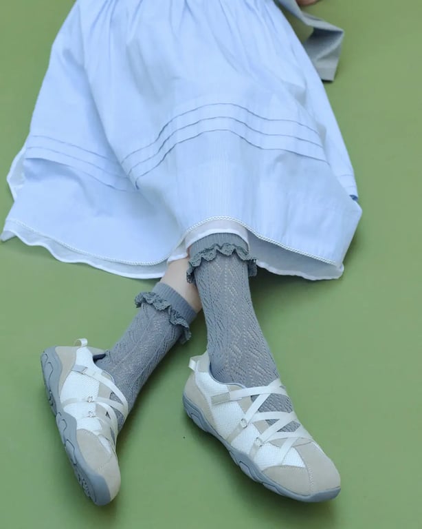 ไอเท็มอย่าง “Mary Jane” และ “Lace-up Sneaker” ถ่ายทอดเสน่ห์ของเทรนด์ Balletcore และ Y2K ควบคู่ไปกับความเป็น British Traditional ที่สะท้อนเอกลักษณ์ของภูมิอากาศแปรปรวนแบบอังกฤษ เกิดเป็นความลงตัวที่ผสานทั้งความเฟมินีนและความเฉียบคม, ความร่วมสมัยและความเหนือกาลเวลา พร้อมนำเสนอแรงบันดาลใจใหม่ในการสร้างสไตล์จากพื้นรองเท้า